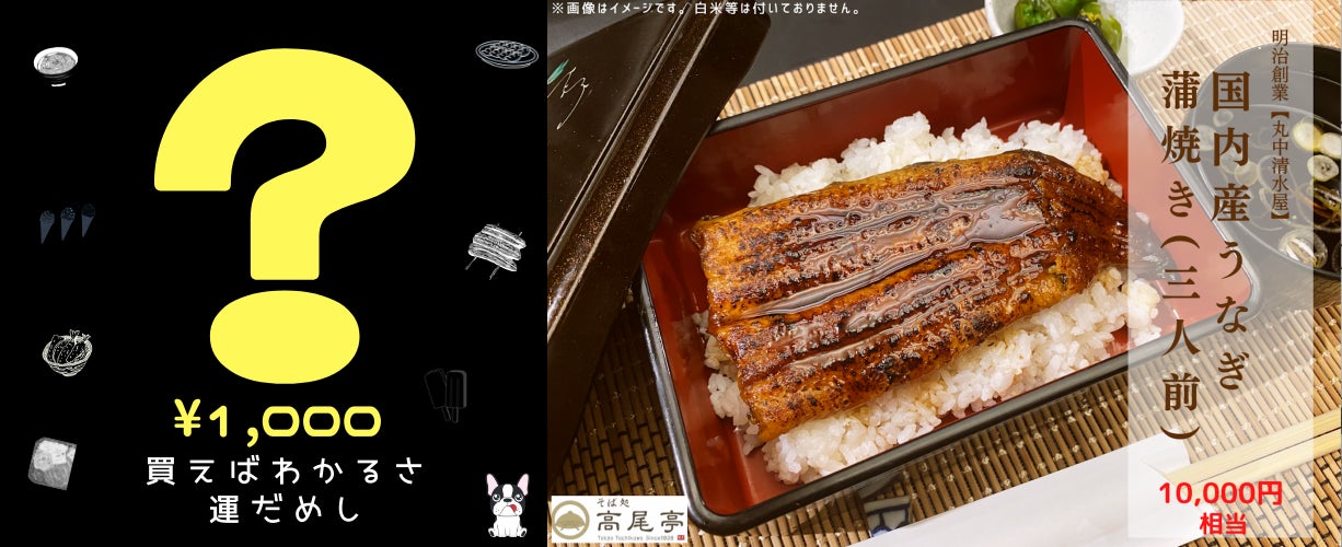 1番の目玉、大当たり商品は1/50で出現する【国内産うなぎ蒲焼き3人前(10,000円相当)】