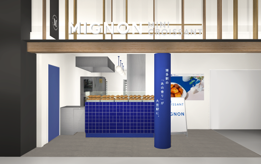 MIGNONは、九州博多駅で26年間愛され続けている焼き立てクロワッサンの専門店で、旗艦店であるJR博多店は、オープンから現在まで行列が途絶えない人気店です。新店舗であるエキュート大宮 ノース店では、博多店の良さを残した店舗デザインで、店内にあるクロワッサン専用のオーブンにより、焼き立てのミニクロワッサンを提供します。