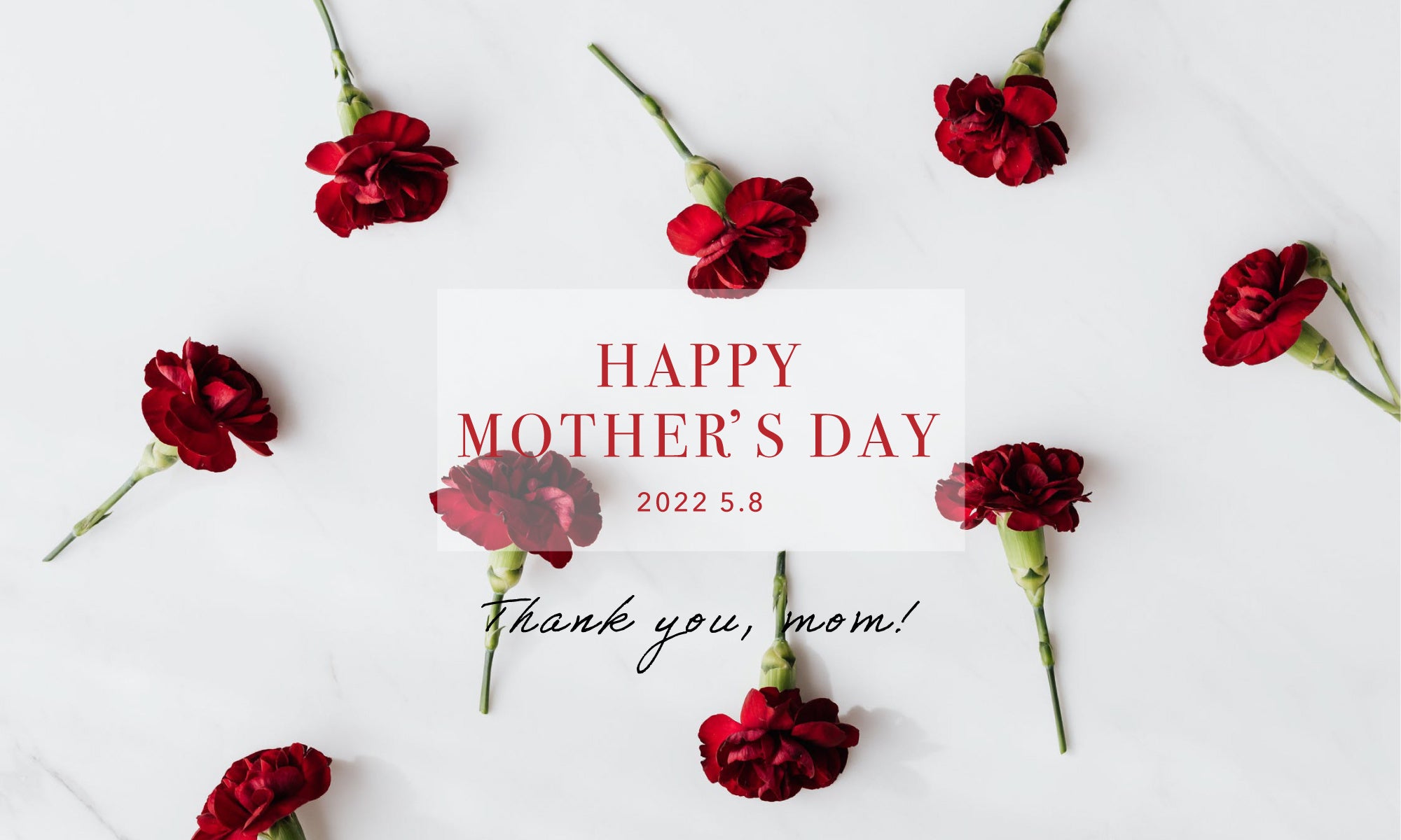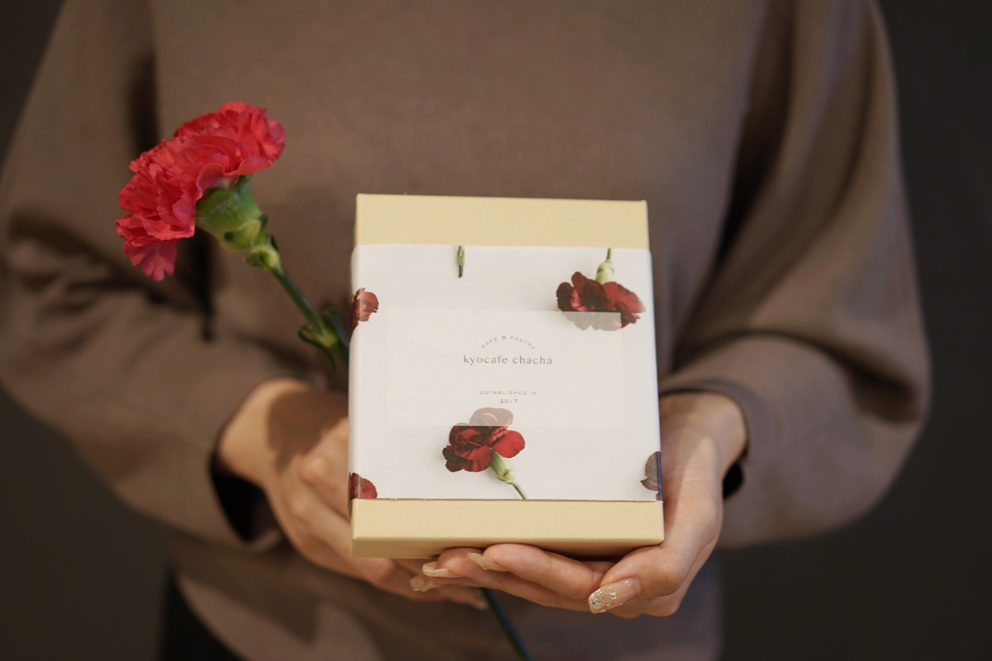2022年の母の日限定で、ベージュのボックスにカーネーションの描かれたラッピングシートを使用。ボックスを開ける前も”きゅん♡”としていただけます。