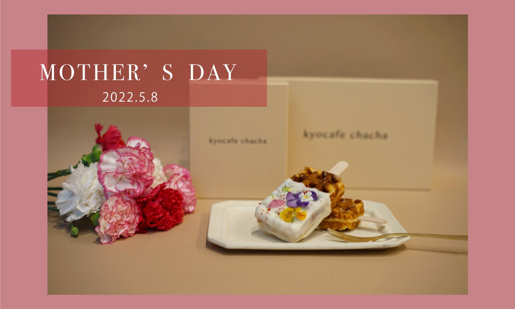 ジャパンリゾート株式会社(本社:京都府京都市、代表取締役社長:松下美耶)が展開する「kyocafe chacha(キョウカフェ チャチャ)」では、2022年4月13日(水)12:00~5月4日(水)12:00まで、公式WEBショップにて『母の日限定 ギフトボックス』の予約販売を開始いたします。母の日らしいラッピングとエディブルフラワーを使用したカラフルな京ワッフルとなっています。商品のお届けは2022年5月6日(金)~5月10日(火)です。