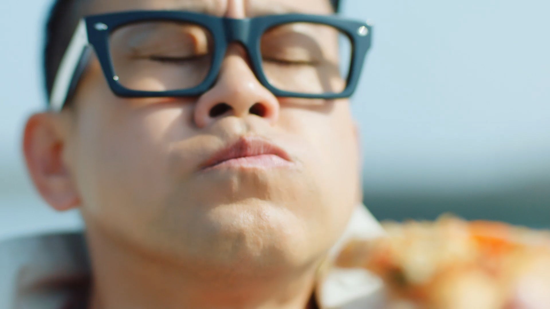 「産直ドミノ」アンバサダーの宮川大輔さんは、「パンチのある黒豚は、脂に甘みがあっておいしい!」とピザをペロリと平らげました!菜の花との相性も抜群です。