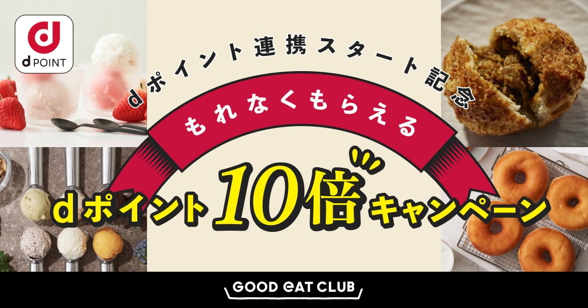 日本中の愛すべき食を集めたEC「GOOD EAT CLUB」を運営する株式会社グッドイートカンパニー(本社:東京都渋谷区、代表取締役CEO:楠本修二郎/以下、グッドイートカンパニー)は、株式会社NTTドコモと共同で実施する、dポイント10倍キャンペーンを「GOOD EAT CLUB」にて開始することをお知らせします。