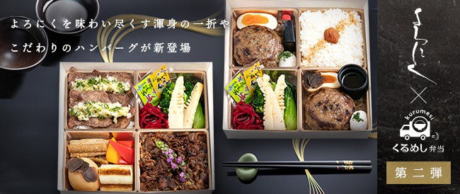 日本最大級の法人・団体向け弁当デリバリーサービス「くるめし弁当」(運営:日本フードデリバリー株式会社、本社:東京都渋谷区、代表取締役:石川 聡)は、「よろにく」第2弾のお弁当の販売、デリバリーを開始しました。部位の食べ比べができるお弁当や、今回新たに開発した黒毛和牛のハンバーグ弁当などの新商品をオフィスでの懇親会やロケ現場、ご自宅でのお祝いごとなど様々なシーンにお届けします。