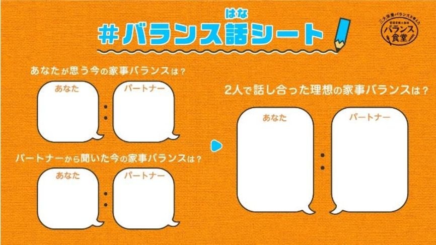 『家事バランス会議』をする方が、パートナーとの関係も家事もうまくいくことが分かりました。ただ、パートナーへ家事バランス会議の呼びかけをしづらいという方も多いと思います。そこで、パートナーとの家事バランス会議のきっかけに『#バランス話シート』を活用してはいかがでしょうか。『#バランス話シート』を書き、お二人が納得する家事バランスを話し合ってみてはいかがですか。