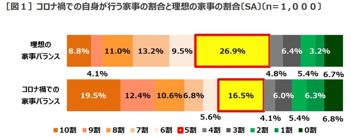 - コロナ禍での家事バランスに理想と現実でギャップが。理想の家事バランスには遠い結果に