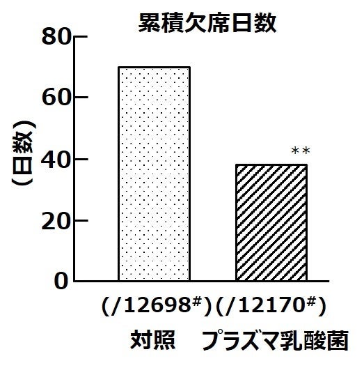 プラズマ乳酸菌を摂取していたグループで、累積欠席日数が有意に低下したことを確認しました。