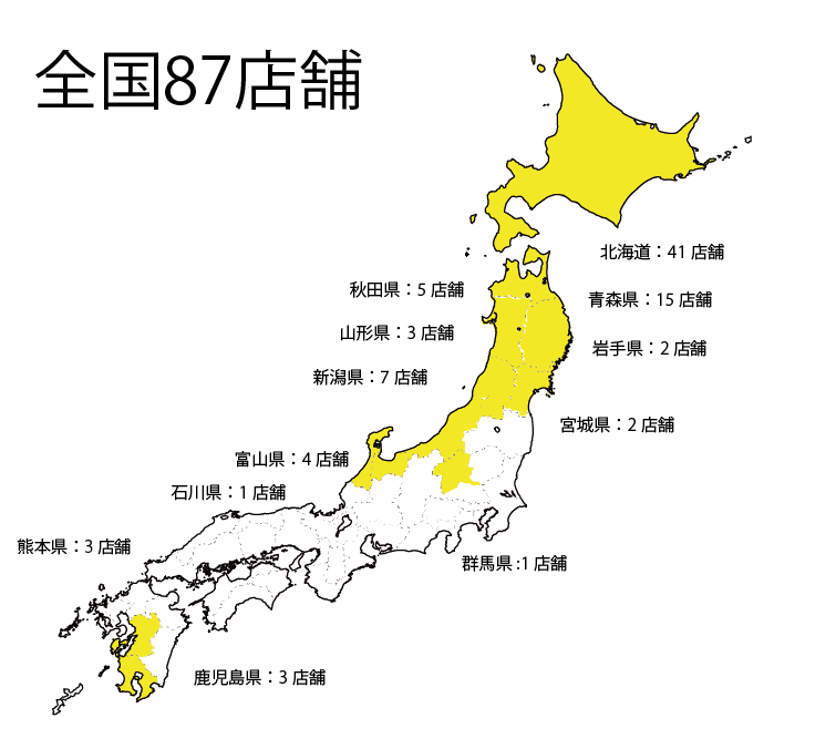 :北海道+東北で店舗数NO.1!北海道の出店市町村数圧倒的NO.1!(自社調べ)