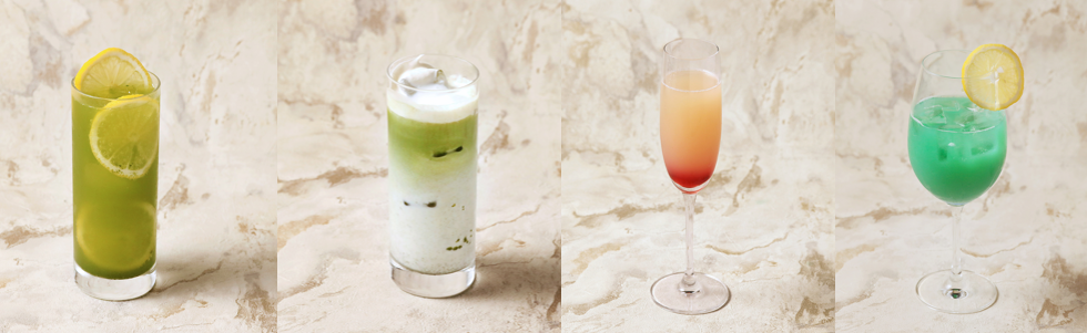 抹茶を使った抹茶ソーダーや抹茶ラテのドリンクもメニューに加えたほか、三菱一号館美術館スペシャルドリンクから、ポエム、blue(ブルー)もセレクトいただけます!また、紅茶はティーポットでご提供いたしますので、お好みの濃さでお楽しみください。