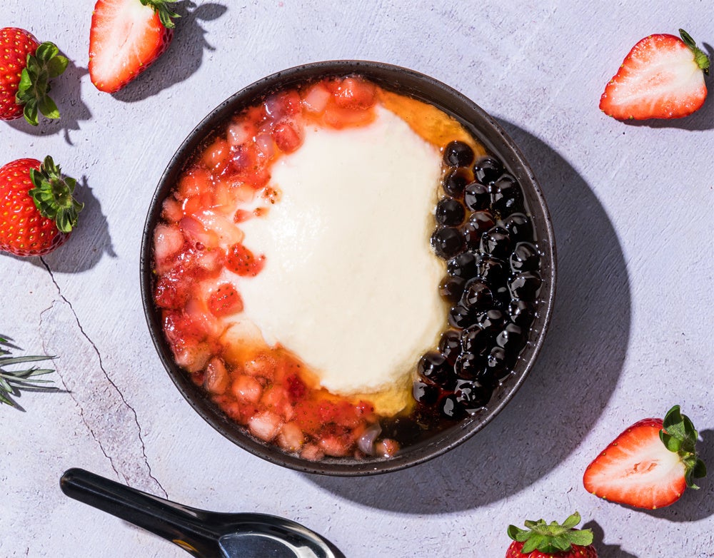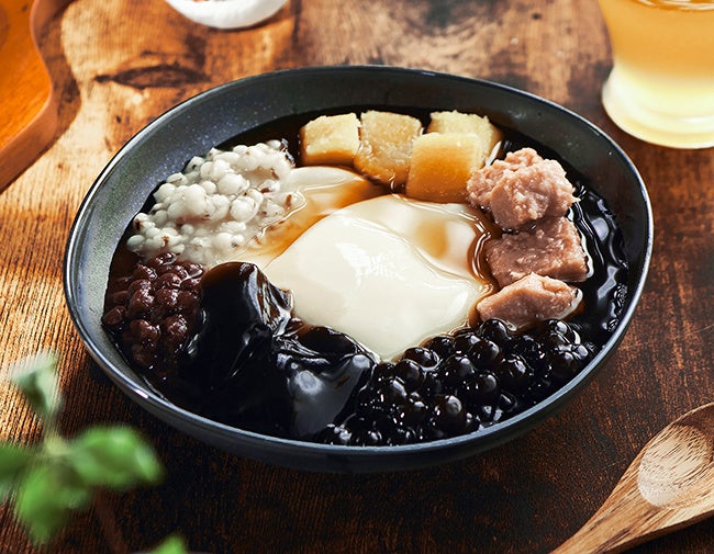 店舗で毎日仕込んでいる自家製の杏仁豆花に、いちごの果肉やナタデココ、生タピオカ、ジャスミン茶ゼリーを入れました。ぷるんとした食感が軽く、口に運ぶ手が止まらなくなります。台湾甜商店この夏の一押しスイーツです。