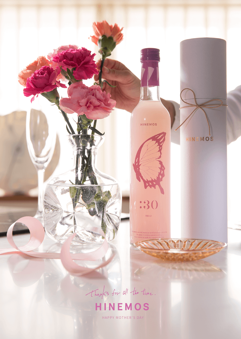 母の日に向けて、女性人気No.1のREIJI(AM0:00)を花に止まる蝶にリデザイン。母の日に贈る花に添える華やかなボトルには、蝶が似合います。桃色にごり酒は特別な製法でつくった低アル・甘口のお酒。普段と違う、特別な母の日の時間を過ごせる贈り物となります。