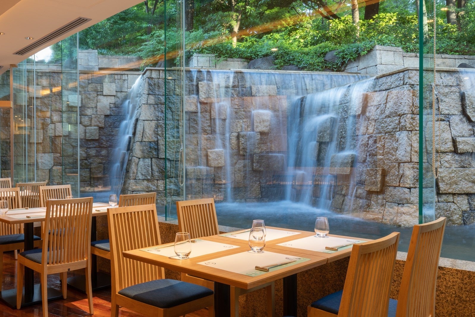 大阪駅より徒歩7分、梅田スカイビルの地下1階。季節の移ろいを感じさせる「中自然の森」に包まれた閑静な佇まい。