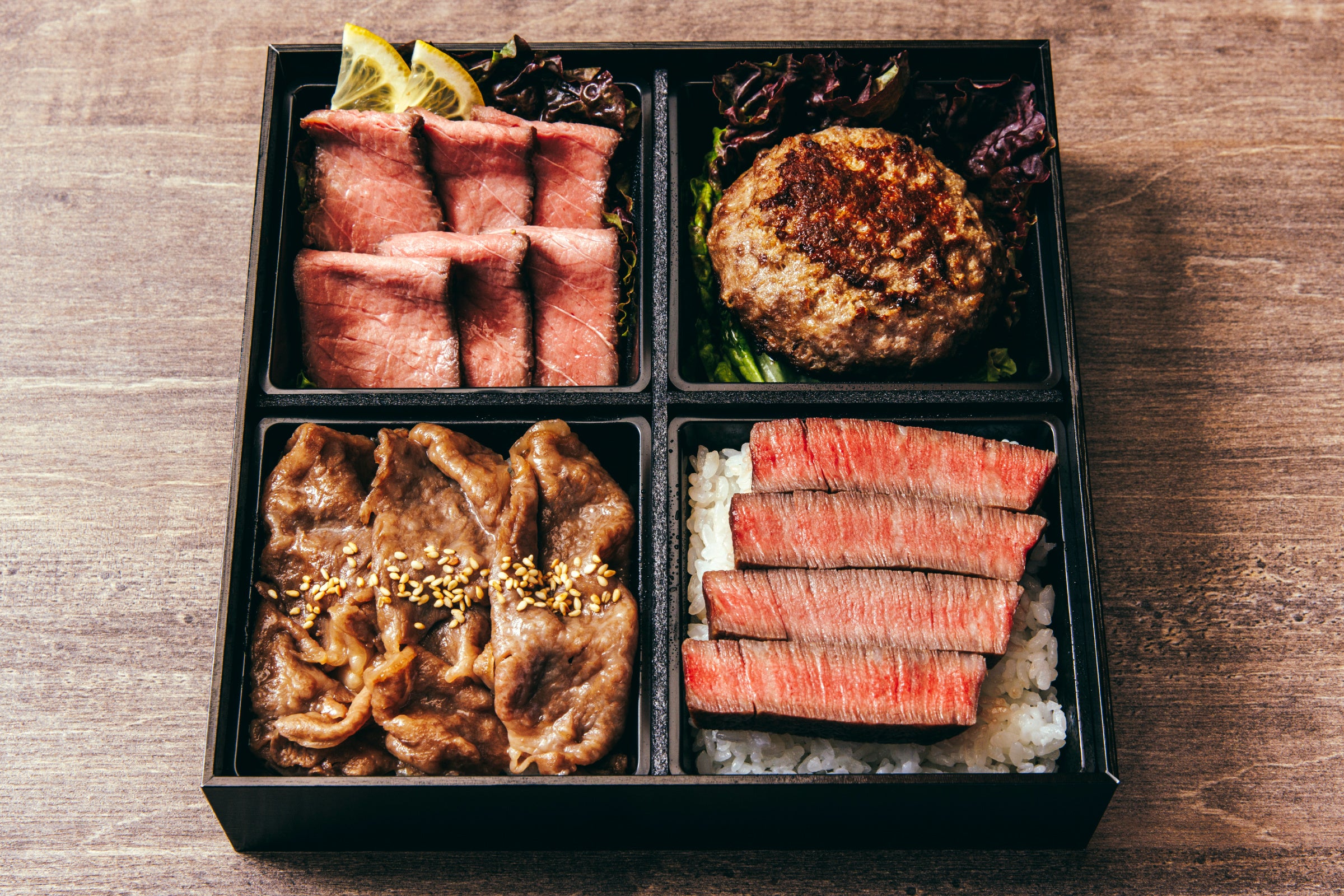 カリッと香ばしく、中はレアでジューシーに焼き上げた“極上ヒレステーキ”をメインにローストビーフと焼肉、長谷川北斗シェフ監修の和牛100%ハンバーグをお楽しみいただけます。試作を重ねてたどり着いた、文字通り至高のお弁当です。