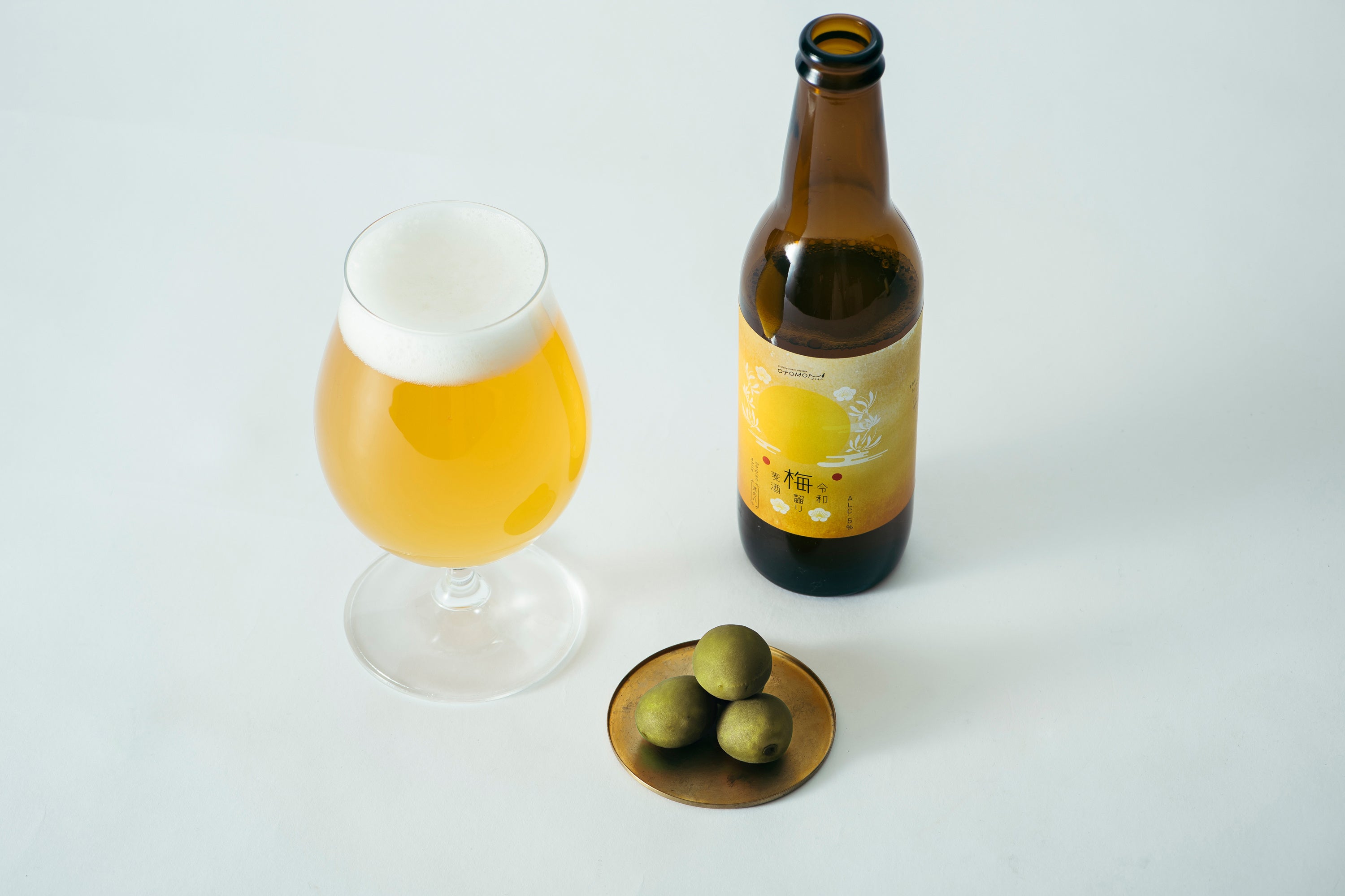 令和スタイルの楽しみ方である、梅を齧りながら飲んで口の中で味わいを完成させるオトモニオリジナルビール「令和梅齧り麦酒」、是非一度お試しください。