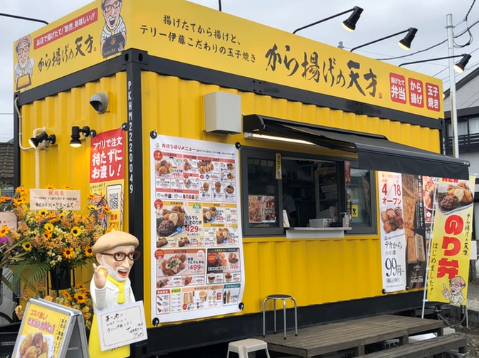 揚げたてから揚げとテリー伊藤こだわりの玉子焼き「から揚げの天才」は、2021年12月に初のコンテナタイプの店舗を相模台にオープンし好調に推移しています。そして今回、好調なコンテナタイプの4号店出店が決まり、2022年4月18日(月)に茅ヶ崎市西久保にオープンし、オープン初日は200名を超えるお客様にご来店頂きました。