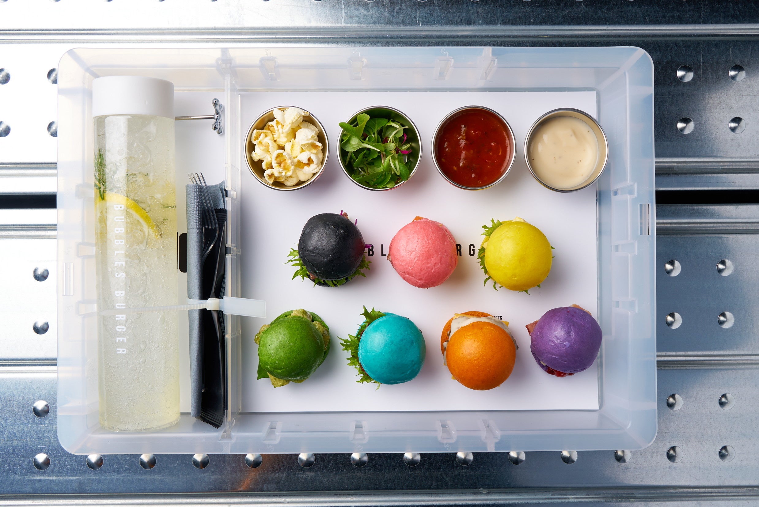 BUBBLES BURGERは、さくら名所100選に指定されている福井県足羽山の「ASUWAYAMA DECK(アスワヤマデッキ)」に2022年3月OPEN。植物由来で安全な7色のオリジナルバンズが特徴で、SNSでの訴求力が高く、見た目のインパクトも抜群のため、Z世代を中心に話題を集めています。
