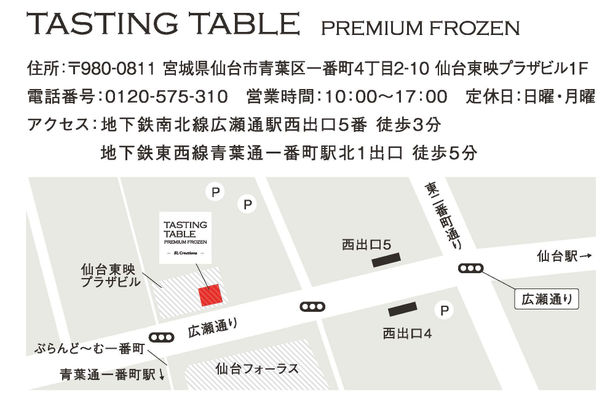 〒980-0811 宮城県仙台市青葉区一番町4丁目2-10 仙台東映プラザビル1F