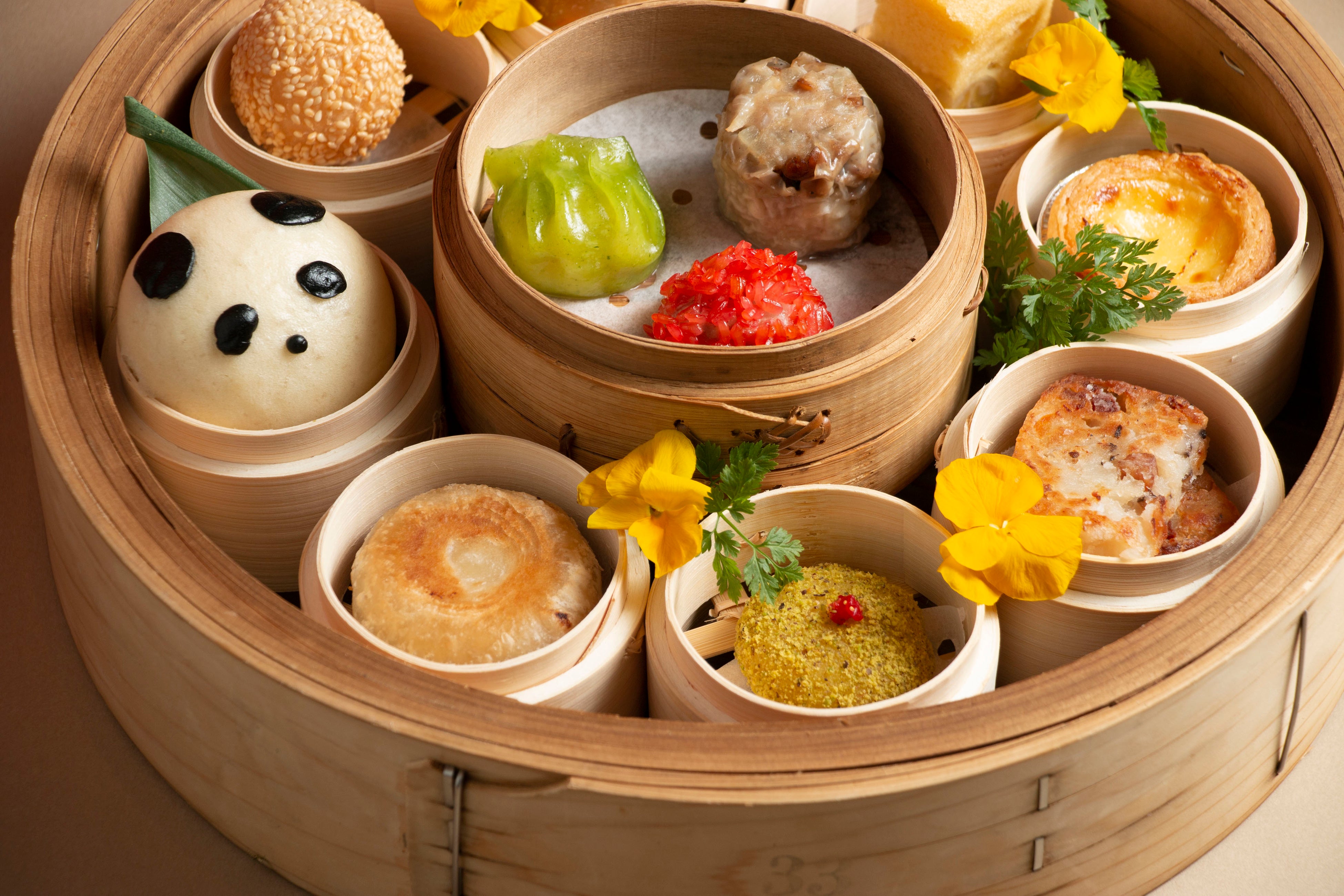 [セイボリー]チャーシューパイ/シラス春巻き/浅利焼売/翡翠エビ餃子/餅米肉団子/大根餅[スイーツ]パンダまん/マーラーカオバナナ仕立て/ピスタチオ団子/杏仁豆腐/季節のフルーツ/エッグタルト/ベリームース/胡麻団子