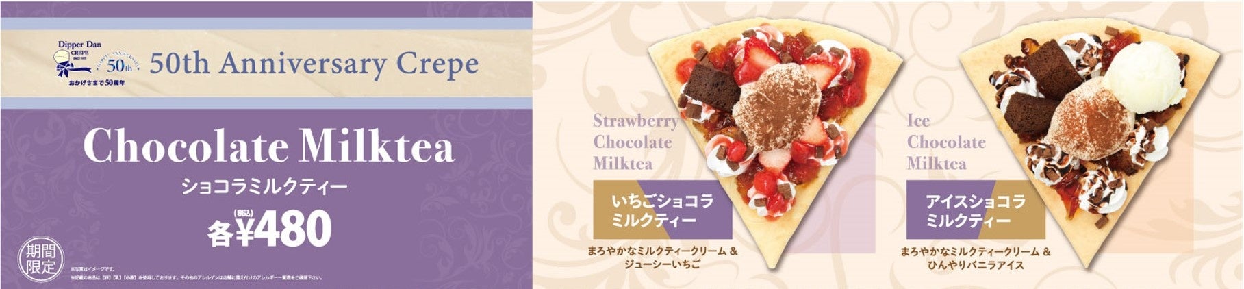 “50周年記念クレープを発売” 【“ショコラミルクティー“ 全2種】