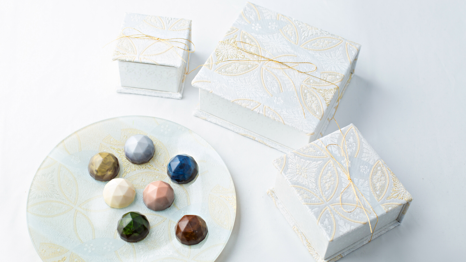 意味合いのある生地で作られたインテリアボックスとビジュアル・味わいともに洗練されたチョコレートは「ちょっと贅沢なプレゼント」に最適です。