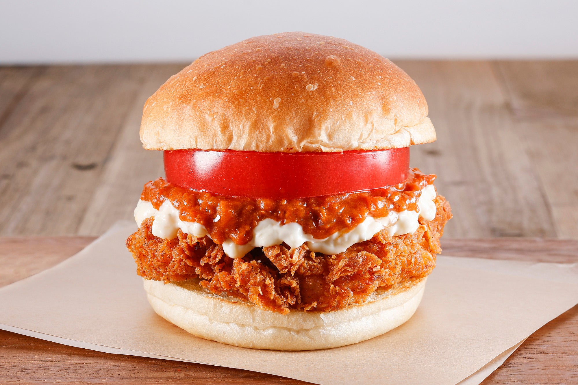 スパイシー&クリスピーなフライドチキンと、ジューシーなフレッシュトマトの組み合わせ