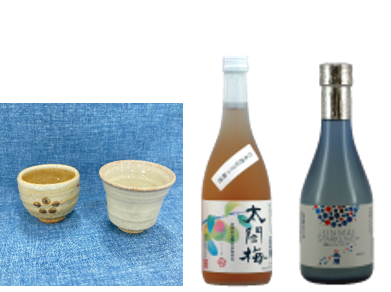 試飲会では特別に醸造した清酒で、地元産の完熟南高梅を漬け込んだ梅酒(太閤梅)または女性に人気の夏の限定酒(純米スパークリング)をお試しいただけます。さらに4/23(土)は鳴滝酒造さんの商品を含む1,296円(税込)以上ご購入で唐津焼の「ぐいのみ」をプレゼントいたします!