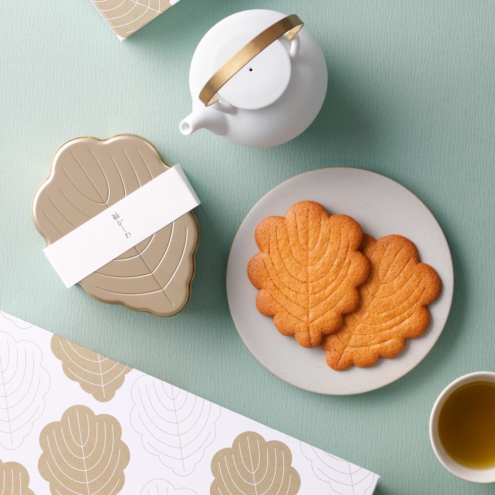 冬でも落葉せず、春に若葉が育つまで新芽を包み守ることから “代をつなぐ”縁起の良い植物とされている “柏の葉” をかたどったサブレー。北海道産の小麦粉とてんさい糖を使い、こんがりサクッと焼き上げたバターが香る逸品です。