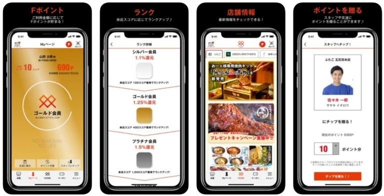 飲食店公式アプリ作成サービス|レストラン★スターを提供するアクティブ・メディア株式会社(本社:東京都千代田区、代表取締役:磯島順一郎)は、大阪焼肉・ホルモンふたごなどを世界展開する株式会社FTG Company様(本社:東京都目黒区、以下『ふたご』)の「F-POINT」アプリを開発、運用をサポートし販売促進と顧客台帳経営のDXに大きく貢献しました。