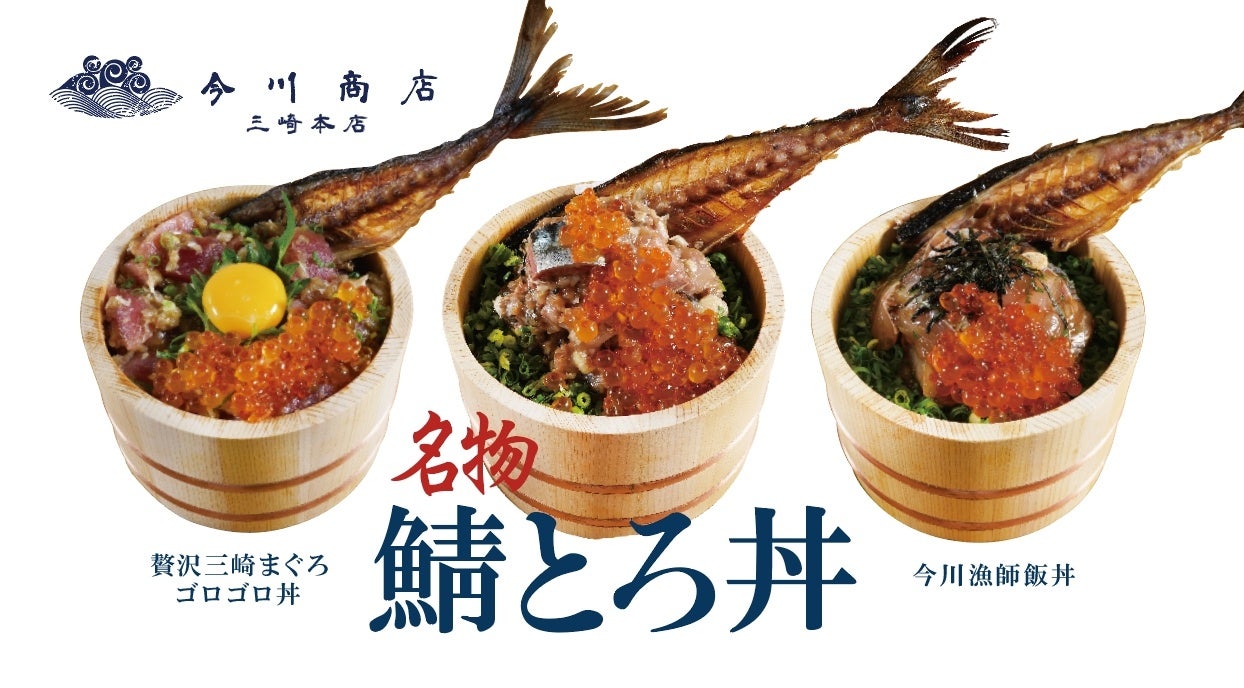 関東では珍しい、鯖を生で提供できる店、『いまがわ食堂』を展開する株式会社今川商店は、本社所在地である三崎に『今川商店 三崎本店』をオープンいたします。これを記念し2022年4月27日(水)~5月31日(火)までの期間限定で、各種海鮮丼の並をご注文のお客様全員にいくらトッピング&胡麻味噌刺身を無料サービスさせていただきます。
