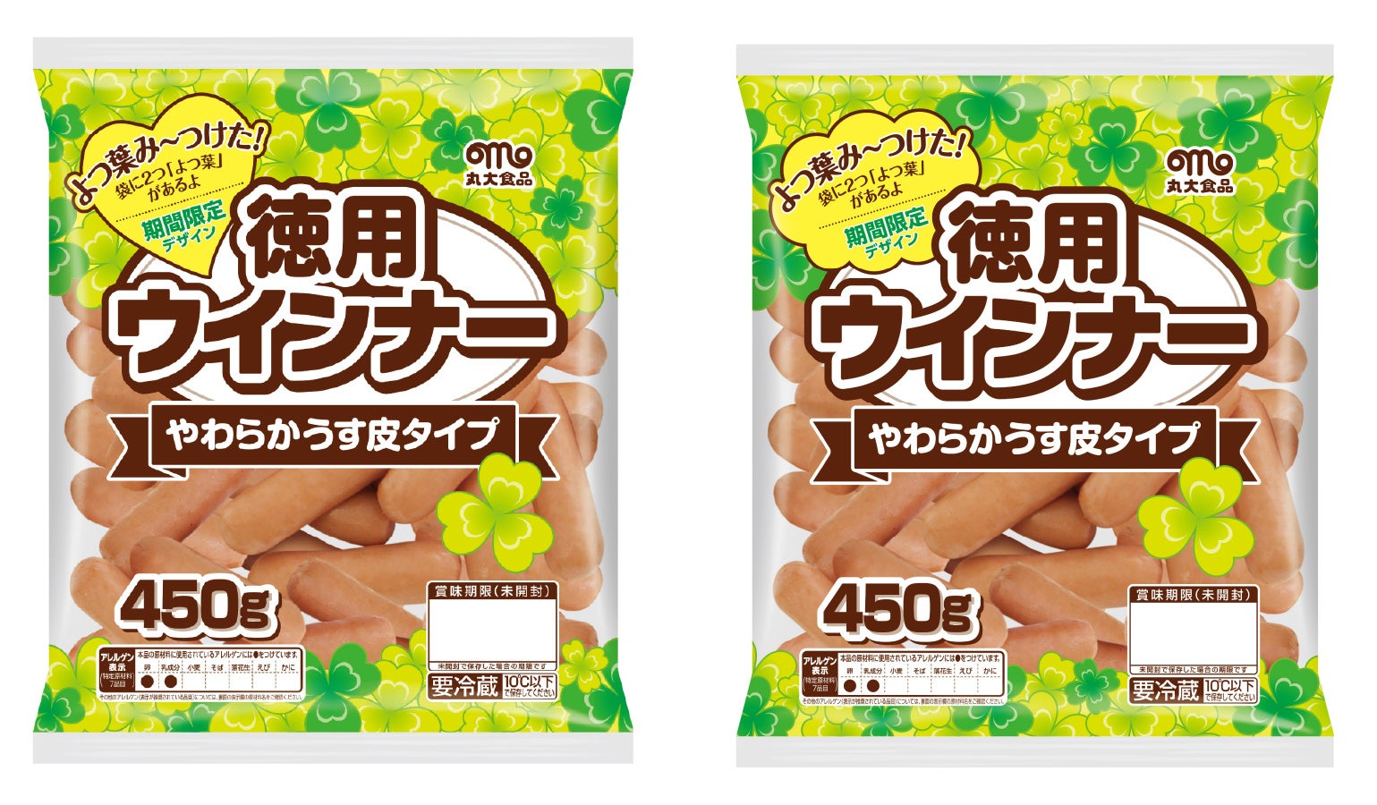 「徳用ウインナー やわらかうす皮タイプ」を「よつ葉み~つけた!」デザインパッケージで販売いたします。