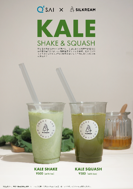 キューサイは1982年のケール青汁製造・販売開始以来、国産のケールのみを使用したケール青汁を提供し、本年9月で40周年を迎える歴史ある企業です。「SILKREAM」は、日世が運営する唯一の店舗で、「日本の食文化」としてのソフトクリームを世界に発信する情報基地、さらに、日世のソフトクリームブランドを発信することをコンセプトにしたアンテナショップです。こうした両社のこだわりとお客さまの健康と幸せを願う想いが重なり、この度コラボレーションが実現しました。