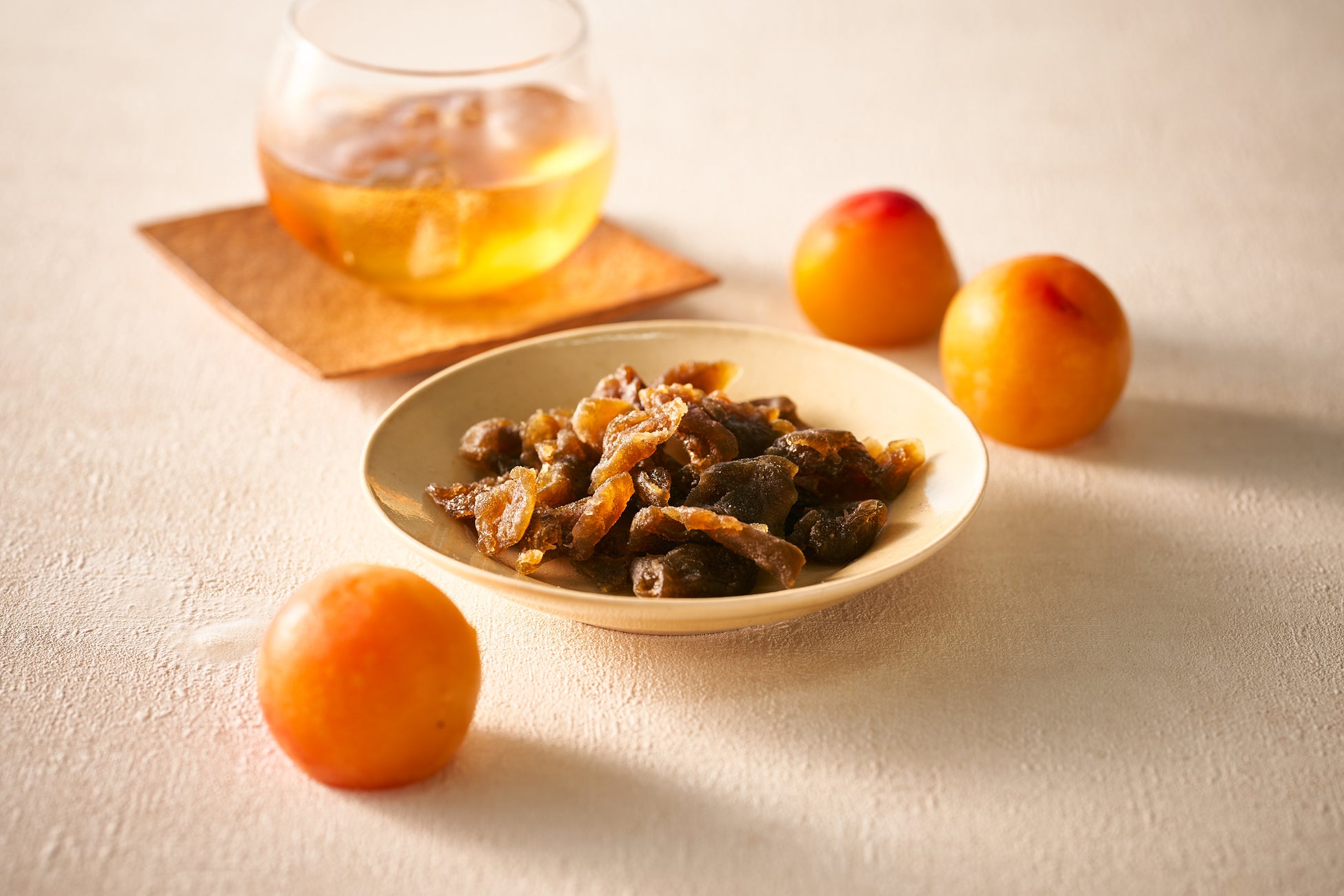 梅酒づくりに使われたあとの、旨味が凝縮された梅を丁寧に種抜きし、独⾃の製法でしっとりと仕 上げたドライフルーツです。さわやかな⽢酸っぱさが癖になる⼀品。そのまま召し上がっていただく他、チーズやサラダのトッピング、お菓⼦の材料としても。梅の新たなおいしさを楽しめる商品になりました。