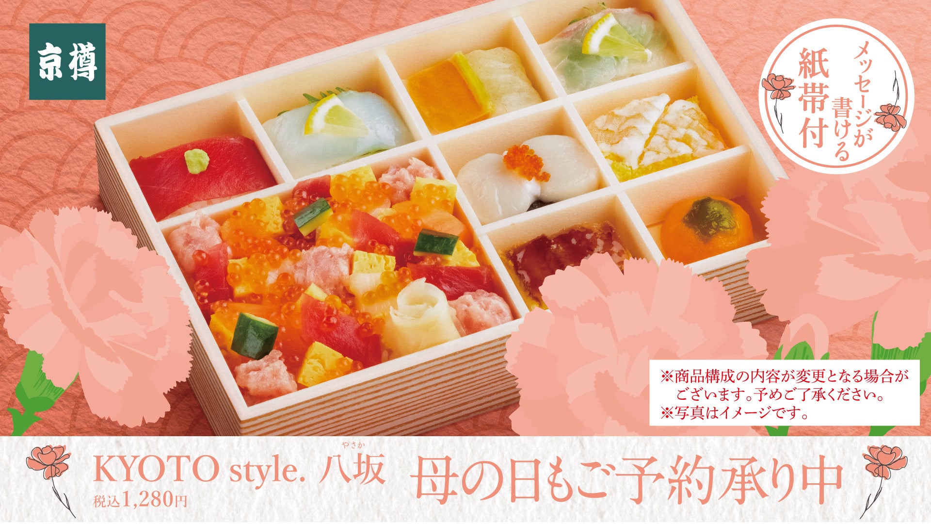 株式会社FOOD & LIFE COMPANIES(本社:大阪府吹田市、代表取締役社長 CEO:水留 浩一)の子会社である株式会社 京樽(本社:東京都中央区、代表取締役社長:堀江 陽)は、お持ち帰り鮨専門店『京樽』にて、4月20日(水)より母の日限定商品「KYOTO style.八坂(やさか)」の予約を開始いたします。