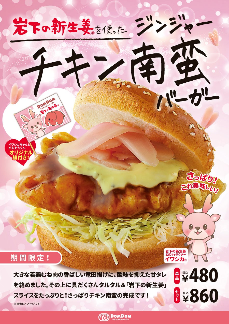 期間限定商品となりますので、この機会にぜひ、岩下の新生姜 × ドムドムのコラボバーガーをお召し上がりください。