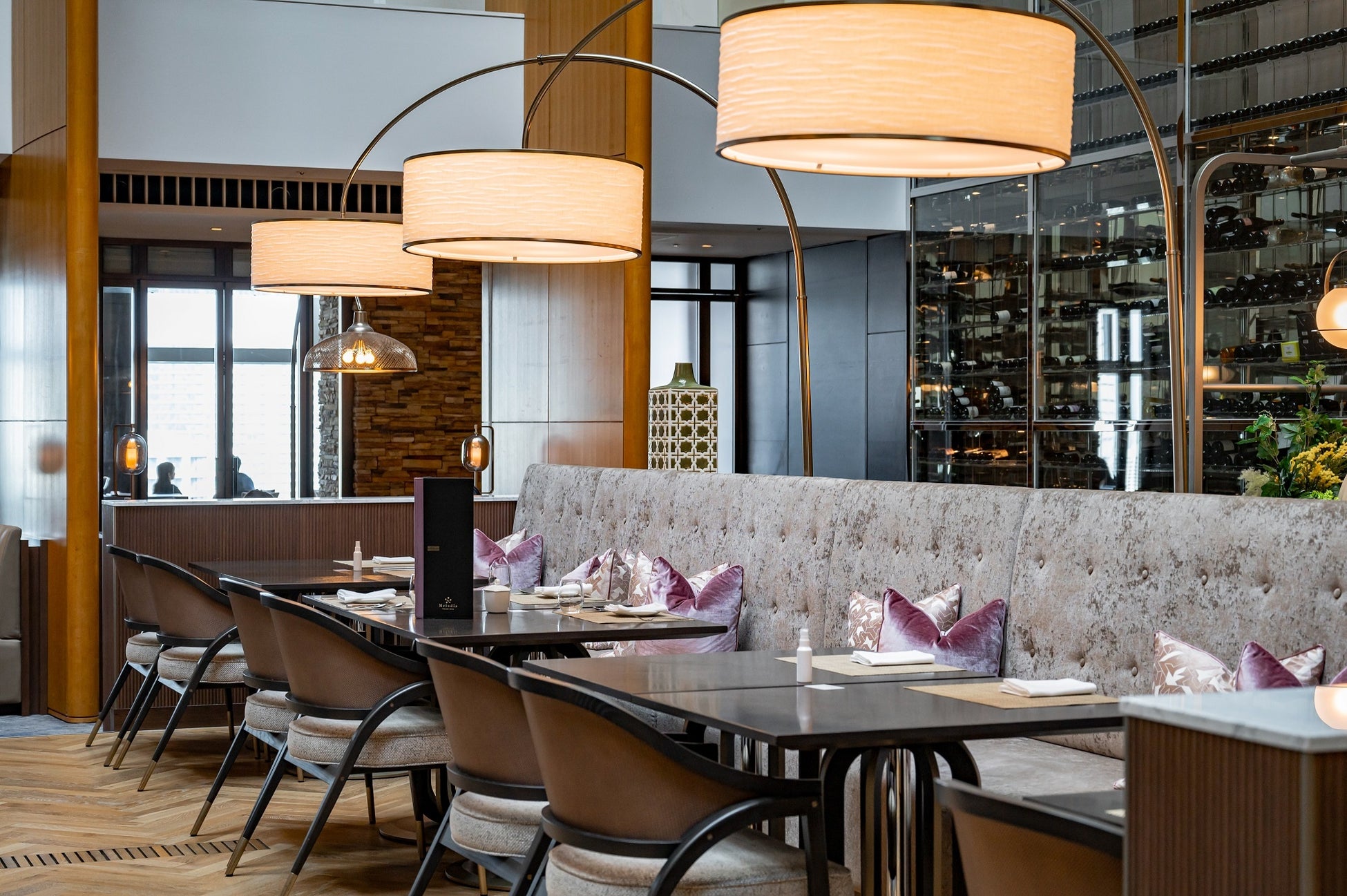 26階の「ザ・スコア・ダイニング」は、音楽を共有するために必要な“楽譜”になぞらえた4つのレストランが競演するエリア。多くの賞に輝くスターシェフたちによる、独創的な美食の数々を楽しめるデスティネーション・レストランです。ギリシャ語で“リズム”を意味するカフェ&バー「リュトモス」は、スコア・ダイニングの世界へお客さまをいざなうエントランスです。続くイタリアングリル「メロディア」は、音楽を構成する要素のひとつであるメロディをイメージ。「リュトモス」の空間とデザインをゆるやかに引き継ぎ、「メロディア」の空中に浮かぶ照明が音符を思わせます。東京のパノラマが広がる圧巻の眺望が堪能できる「チャイナシャドー」は、オーセンティックなチャイニーズをベースに新たな食材やエッセンスを掛け合わせた中国料理を提供します。そしてアトリウムの中央、「リュトモス」と「メロディア」の間には、鉄板焼「風音」。ストリングスが奏でる美食の競演をお楽しみください。