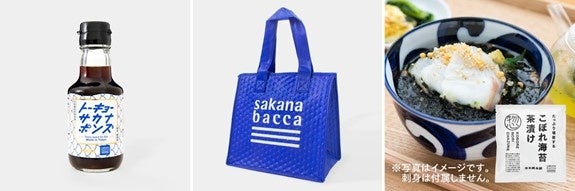2022年4月21日(木)~4月27日(水)の期間中、第1弾として税込3,000円以上お買い上げの先着50名様にオリジナル保冷バッグを、税込2,000円以上お買い上げの先着500名様にsakana baccaオリジナルポン酢の「トーキョーサカナポンズ」をプレゼントいたします。