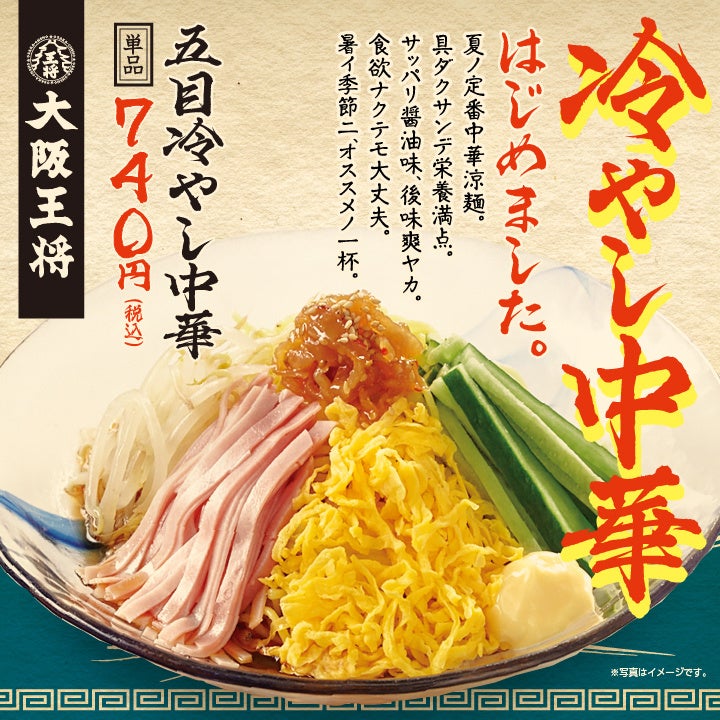 株式会社大阪王将(東京ヘッドオフィス:東京都品川区 代表取締役社長:植月剛)は、餃子専門店「大阪王将」において2022年4月27日(水)より、夏の定番 『五目冷やし中華』 を期間限定で販売開始いたします。