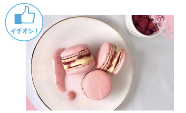マカロンチーズケーキ」の期間限定でラズベリーが登場! コクと甘酸っぱさと見た目でキュン!かわいい! ラズベリーの果肉とジャムをたっぷり入れたチーズケーキを春らしいピンク色のマカロンでサンド!