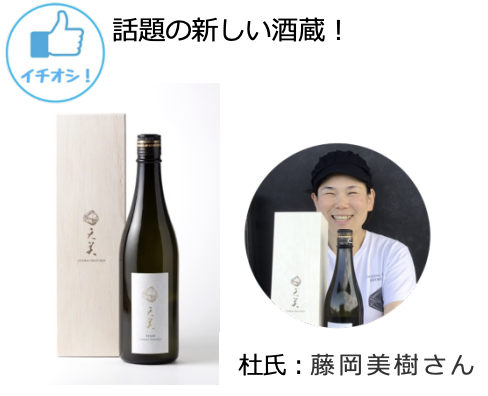 明治 4 年創業の⽼舗酒造「児⽟酒造」の事業 を受け継ぎ、 令和 2 年から新たな酒造りをは じめた⻑州酒造。 杜⽒藤岡美樹さんが醸す 「天美」(てんび)、 注⽬を集めている下関の 新しい地酒をおみやげにぜひ。