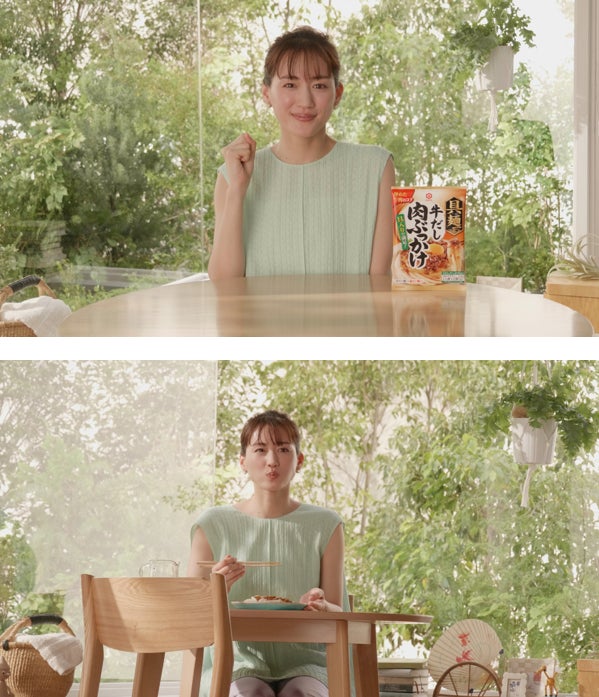 本CMでは、綾瀬さんが“具麺 応援部長”として商品の魅力を伝えます。お昼時のリビングで、簡単に満足度たっぷりなお昼ごはんを「具麺」で作る綾瀬さん。「かけるだけ!」「具麺すごっ!」と驚きのリアクションを取りながら、具入りの「具麺」が絡んだうどんを口いっぱいに頬張ります。