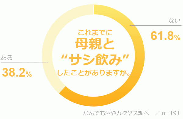 今回、これまでに母親と“サシ飲み”したことがあるかどうかも聞いてみました。父親の場合、子どもと一緒にお酒を飲むシーンは映画やテレビドラマ、CMなどでよく描かれていますが、母親の場合はそうとは言い難いようです。