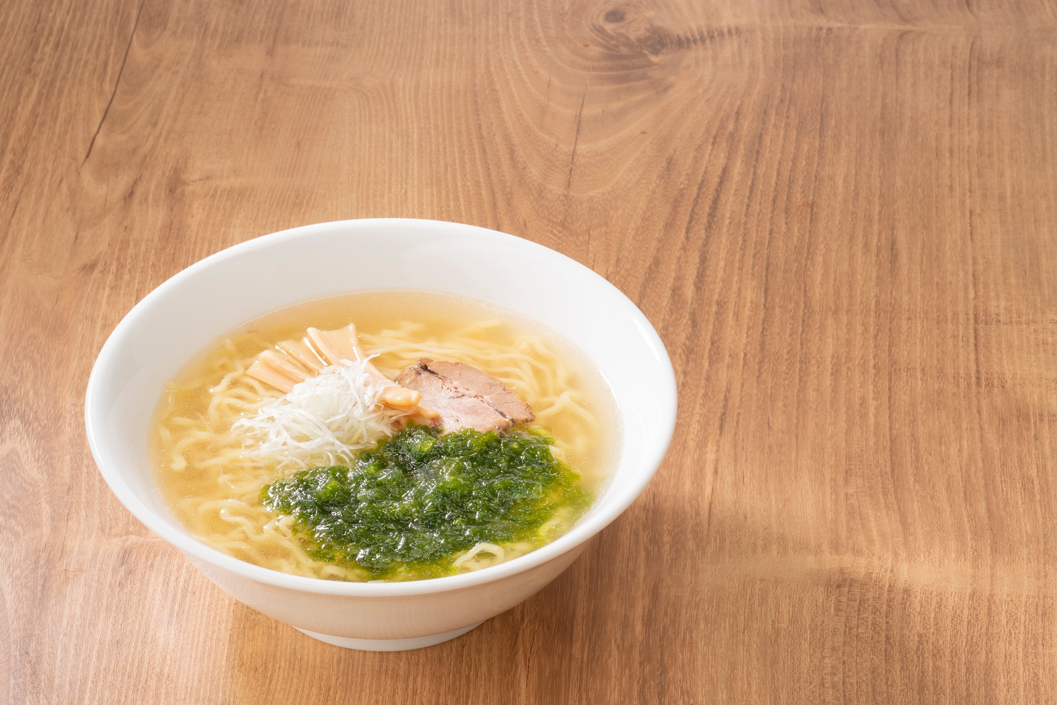 あおさは福島県相馬市のあおさ専門で取り扱っている「(株)マルリフーズ」から直接仕入れ、スープは福島市の老舗醸造所の「内池醸造(株)」が製造。麺は喜多方ラーメンのメーカー「(株)河京」が製造しました。福島県は全国3番目の面積を持ち、地形、気候、文化が違う、浜通り、中通り、会津の3つの地方からなっています。浜通りの「マルリフーズ」、中通りの「内池醸造」、会津の「河京」、浜・中・会津それぞれの地方の良さを一つにまとめた「オール福島の逸品」をお召し上がりください。