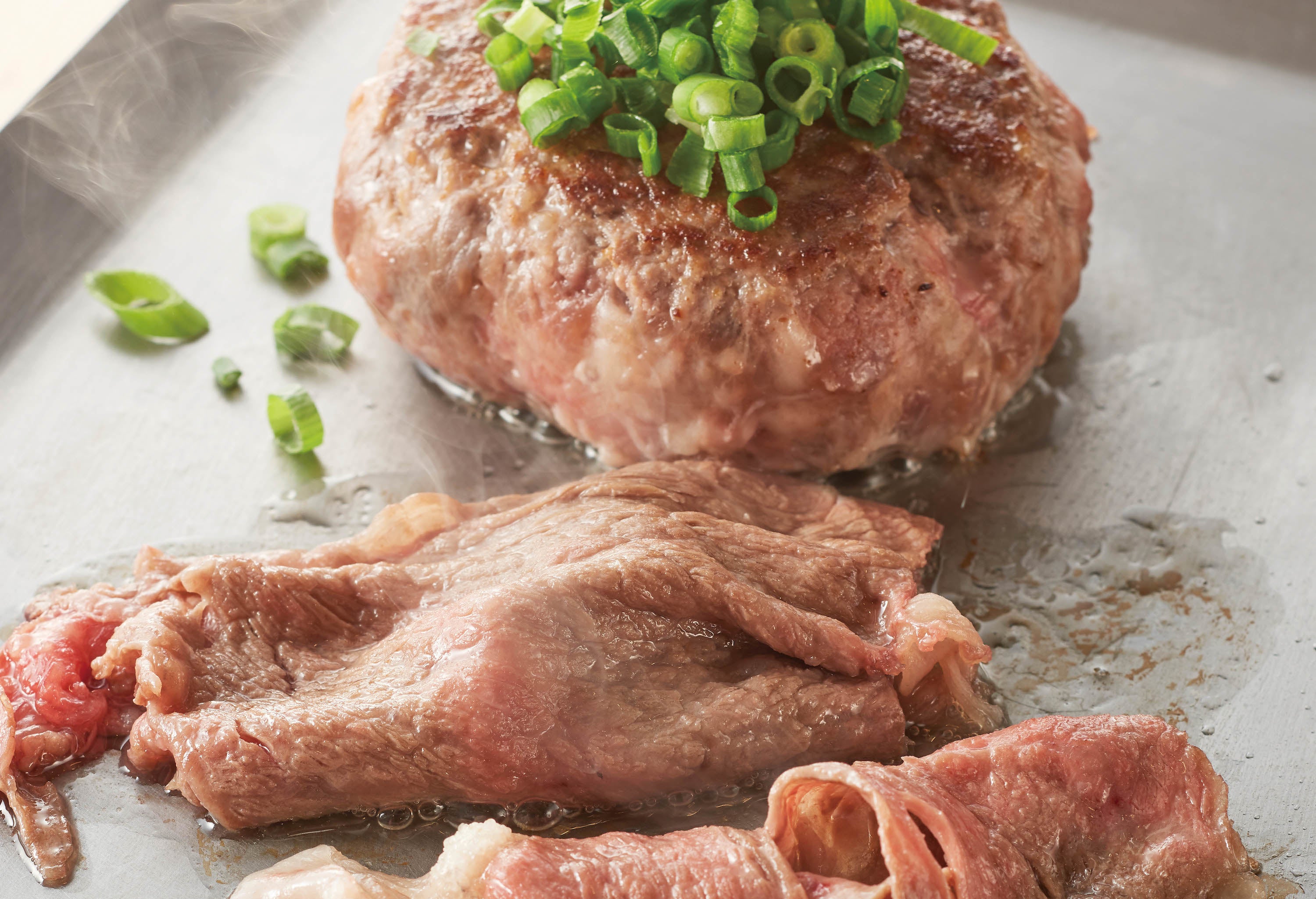 ▲「和牛サーロイン焼きすきと特選和牛ハンバーグ」 120g/2,080円(税込)