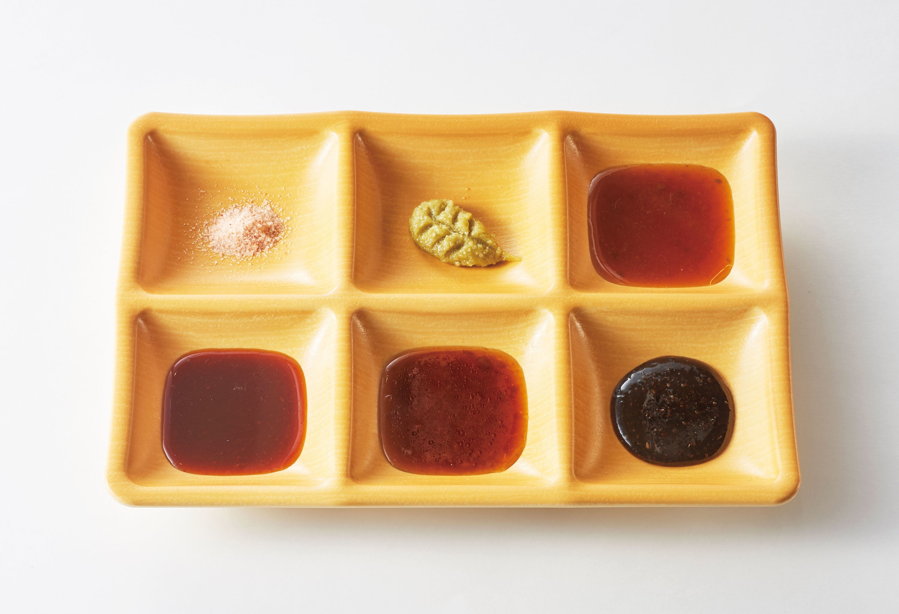 ハンバーグの旨味を引き立てるタレや各種調味料を使って食べるのが「花はん流」。最初は何もつけずにお肉本来の旨味を味わっていただき、その後は多彩なタレで味変をお楽しみください。