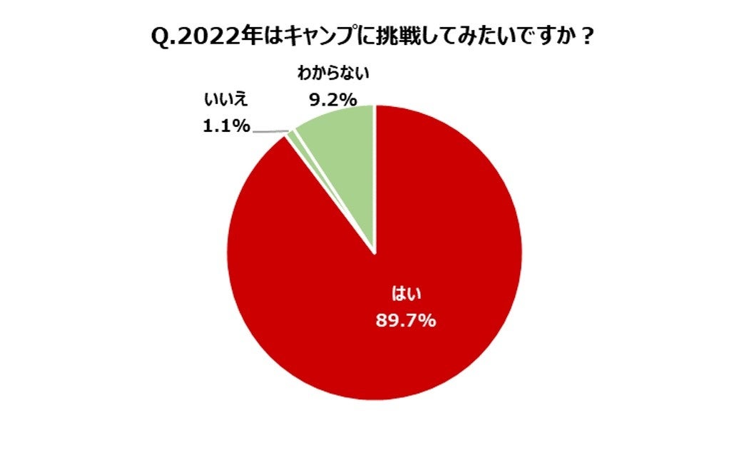 さらに、2021年に1度もキャンプを行わなかったと回答した16.4%の人に、「2022年はキャンプに挑戦してみたいか」質問したところ、約90%の人が「はい」と回答しており、今後もキャンプユーザーの増加が期待できると推察できます。