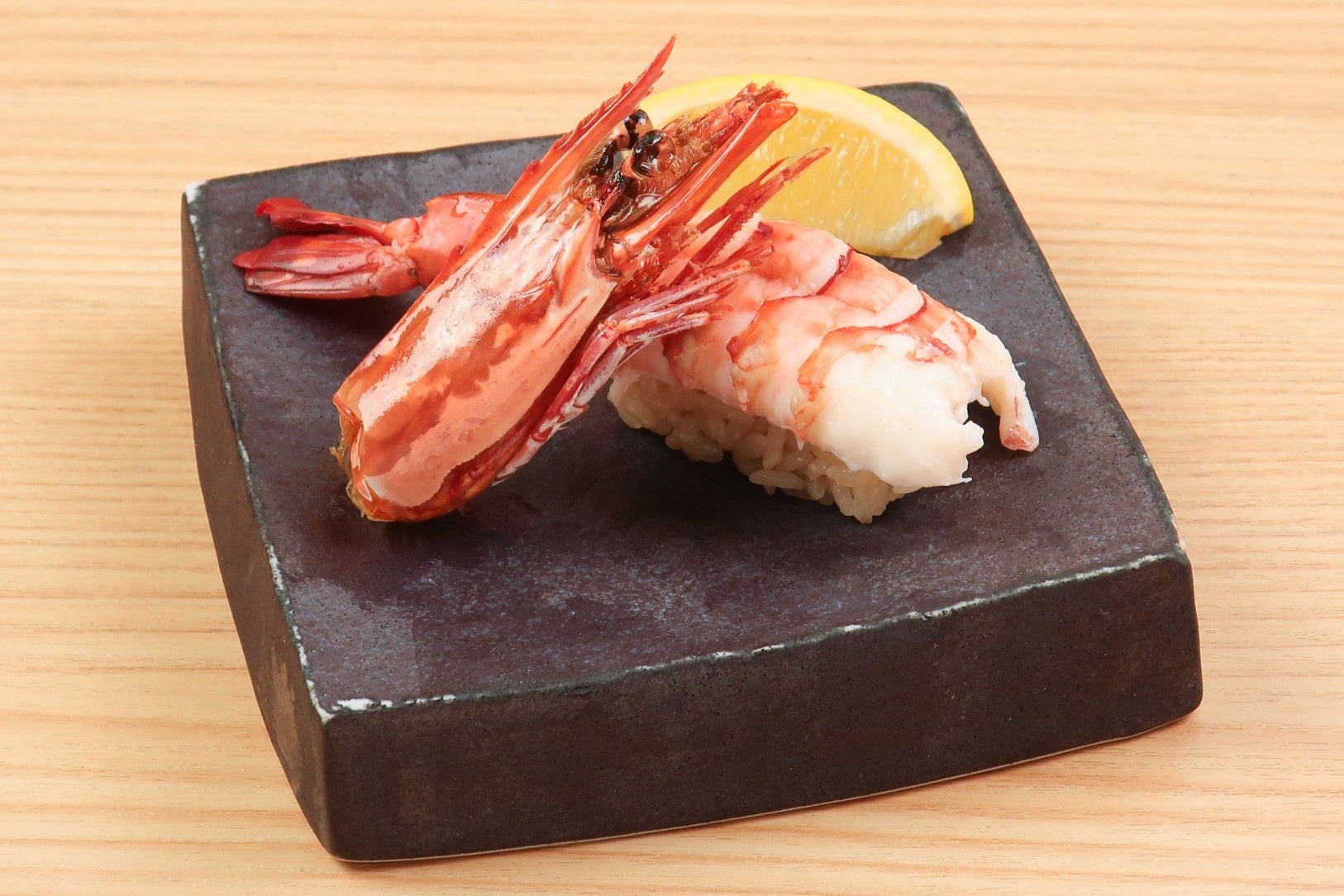 4月28日(木)より、カンパチや馬刺し、大型の天然えびを使った商品をご提供いたします。カンパチは、甘みがあり引き締まった身が自慢で、鮮度にこだわり、生のまま皮付きで納品しています。店内で皮引きから行うことで、皮と身の間の味が濃厚な部分を新鮮な状態で、にぎり、刺身、カルパッチョ仕立てにしてご提供しています。にぎりは、カンパチそのままと、大葉・梅肉でさっぱり味わえる2種類をどちらも2貫299円(税込329円)というお手頃価格で、刺身は、「季節のおすすめ欲張りな刺身4点盛り」としてご用意しています。「カンパチとグレープフルーツのカンパッチョ」は、グレープフルーツのさっぱり感がバジルオイルとよく絡む、相性抜群の一品です。そしてランチ限定で生と漬けの食べ比べが堪能できる丼ぶりが登場します。