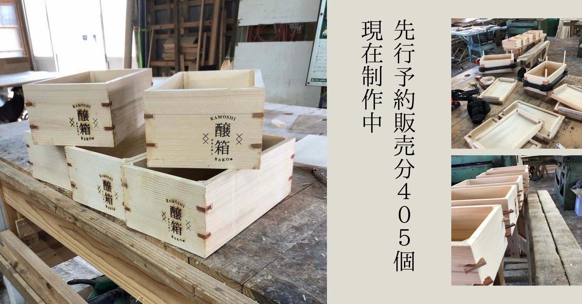 「醸箱」にはドイツ産モミの木を使用しており、現在世界情勢の影響を受け追加入手が困難な状況にあります。リターン品の制作以外は材料をそろえることができません。