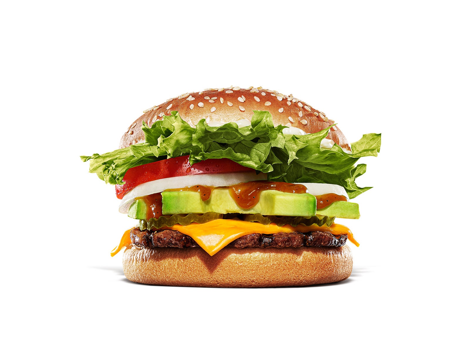 さらに、コクのあるチェダーチーズ、フレッシュなレタス、トマト、オニオン、ピクルスと豊富な野菜を合わせ、トーストしたセサミバンズでサンドしました。ピリ辛で香ばしい新開発「スモーキーサルサソース」が直火焼きの100%ビーフパティの旨みを引き立て、クリーミーなアボカドや豊富な野菜とも相性抜群の、初夏にぴったりな期間限定商品です。また、お手頃サイズの『サルサ&アボカド スモーキーワッパー® Jr.』もご用意しております。お好みに合わせてお楽しみください。