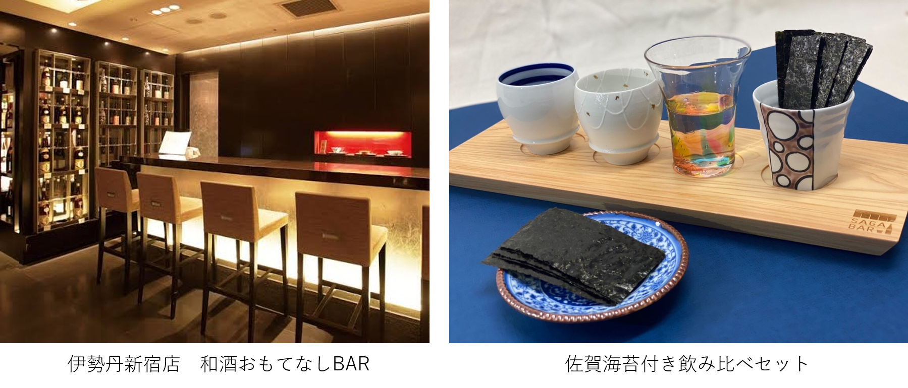 伊勢丹新宿店にて4月22日(金曜日)~24日(日曜日)、「佐賀酒と佐賀海苔を楽しむ。」をテーマに、海苔の老舗 山本海苔店の焼きたて佐賀海苔付き「光栄菊酒造」「天山酒造」の飲み比べセットがイートイン形式で販売されます。当日は蔵元2人が店頭に立ち、お客様へのお酒の解説をして頂けます。この機会に上質な佐賀酒と佐賀海苔をぜひお楽しみください。