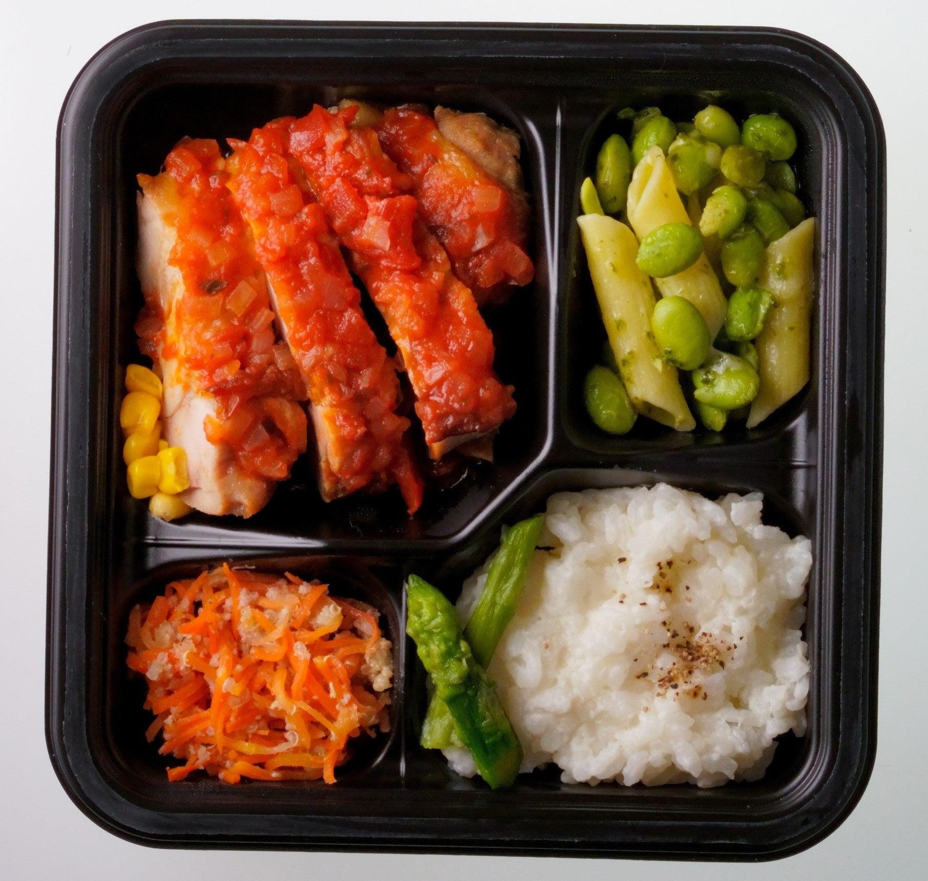 調理法や味付けを工夫することで、食材本来のおいしさを引き出し、冷凍食品とは思えないような本格的な味わいを追求しました。もちろん化学調味料は一切使用していません。お弁当の種類は和食2種・洋食1種・中華2種の全5種類。主菜・主食・副菜2品を和洋中それぞれワンプレートでお手軽にお召し上がりいただけます。オンラインショップ限定で、5食セットからご注文を承ります。お弁当が届いたら、電子レンジで5分程度温めるだけで出来上がり。調理が簡単なだけでなく、1食で適正な糖質・たんぱく質を摂取できる、味も量も満足感のあるお弁当です。
