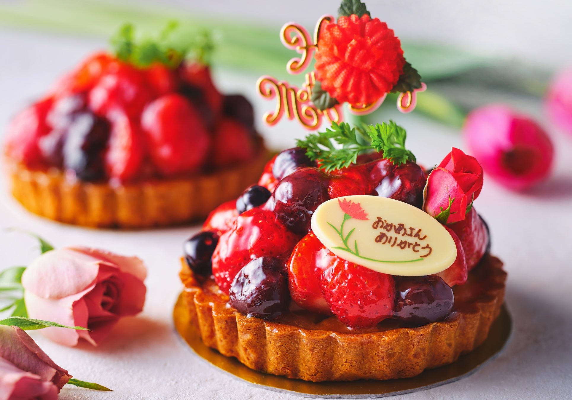 いちご&ダークチェリーと濃厚カスタードクリームを、さくさくタルトにトッピングしました。